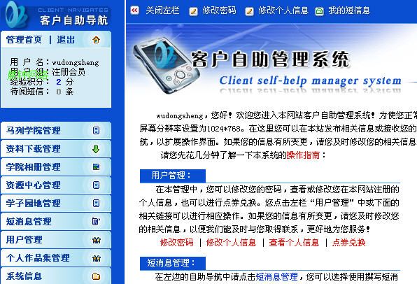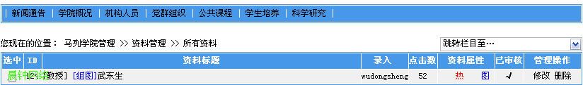 五、更新个人介绍,在右侧的上面,点击选择“马列公司管理”——“资料管理”,将出现如下画面:
