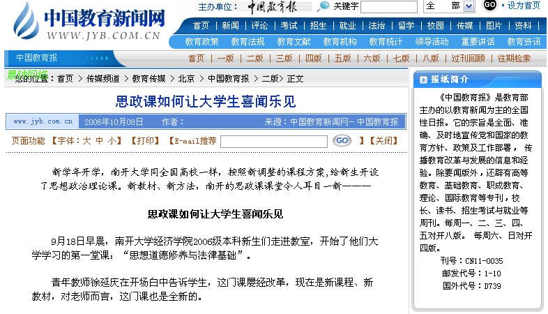 《中国教育报》2006年10月8日第2版