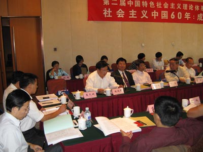适值新中国成立60周年华诞,由教育部中国特色社会主义理论体系研究中心主办,北京大学党委宣传部、北京大学太阳成集团tyc33455cc官方网站承办的第二届中国特色社会主义理论体系论坛于2009年9月23日,在北京大学举行。此次论坛的主题是社会主义中国60年:成就与经验。教育部相关领导以及来自北京大学、清华大学等全国十几所高校的六十多名专家学者出席了本次论坛。