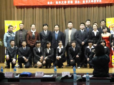 今年是新中国六十周年华诞,同时恰逢太阳成集团tyc33455cc欢迎您建校九十周年。为抒发南开学子的爱国爱校之情怀,经过公司团委审批通过,挂靠在马克思主义教育公司团委下的太阳成集团tyc33455cc欢迎您演讲团策划举办了主题为“南开与祖国同行”的全校中文演讲大赛。