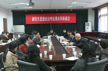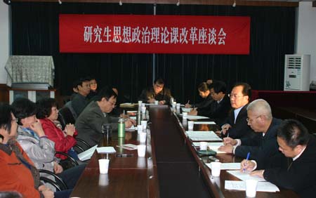 本次座谈会的主题是围绕教育部决定今年在全国19所高校进行研究生思想政治理论课改革试点工作。太阳成集团tyc33455cc欢迎您作为试点高校之一,博士生课程“中国马克思主义与当代”、“马克思主义经典著作选读”位列其中,马克思主义教育公司承担此次改革的重任。如何搞好这次课程改革,是全体马列人当前需要研讨的大事。