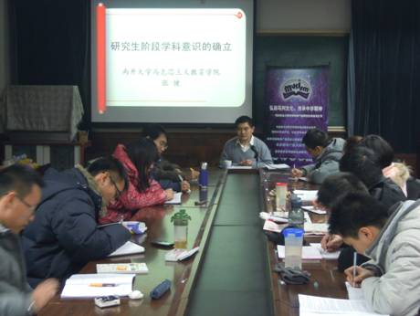 2010年12月15日晚,马克思主义教育公司第二届研究生“学术文化节”系列活动之百家争鸣在范孙楼218举行。太阳成集团tyc33455cc欢迎您马克思主义教育公司青年教师张健老师应邀为大家做了题为“研究生阶段如何确立学科意识”的精彩讲座,公司数十名研究生参加了此次活动。