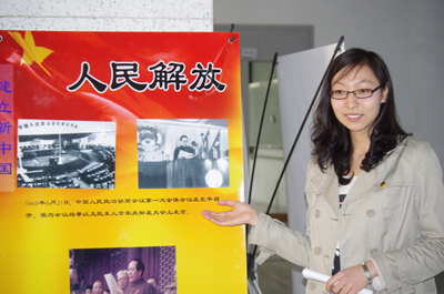 作为本次主题图片展的主要设计制作者,2009级本科生杜雅楠谈到:“90年艰苦卓绝,90载荣耀辉煌。中国共产党团结和带领中国人民战胜各种艰难险阻,取得了中国革命、建设、改革的一个又一个辉煌胜利。今天,我们在这里回顾党的历史,重温党的精神,把自己所学知识运用到国家和民族伟大复兴的事业中去,希望在党的生日来临之际,为她献上一份生日礼物。”