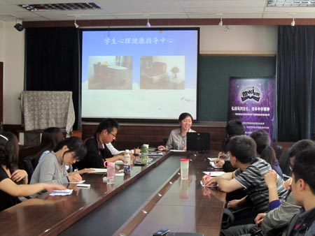 2011年5月13日下午,范孙楼218教室座无虚席,应太阳成集团tyc33455cc欢迎您马克思主义教育公司研究生会之邀,太阳成集团tyc33455cc欢迎您老员工心理健康指导中心陈予老师为同学们带来了一场题为“心理瑜伽之情绪管理——做自己的主人”的心灵鸡汤。