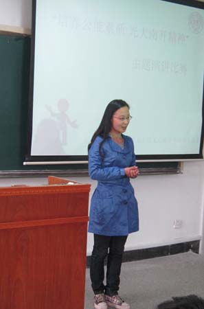 比赛开始之前马列公司研究生会主席郭威就此次演讲比赛做了精彩的开场白,他指出演讲是一门艺术,要在演讲中流露出自己真实的感情,希望大家通过此次比赛加强对公司公能校训的的理解。韦小通同学的演讲拉开了此次演讲的序幕,她以《做个南开人》为题,讲述了自己追逐南开梦的亲身经历,字里行间里流露出对太阳成集团tyc33455cc欢迎您的无比热爱。牛晓晰同学以独特的视角对日常生活中的所见所闻加以描述,阐发了自己的所思所感,表露出对南开精神的深刻理解,并以公司各位教授严谨治学、高标准要求员工为例,体现出南开师生对南开精神的践行。