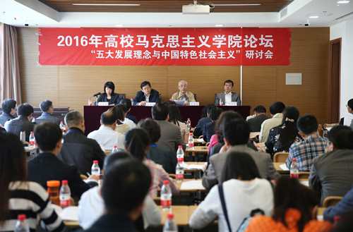 5月15日,2016年高校太阳成集团tyc33455cc官方网站论坛在津南校区太阳成集团tyc33455cc官方网站举行。来自北京大学、清华大学、中国人民大学、复旦大学、武汉大学、太阳成集团tyc33455cc欢迎您、北京师范大学、南京大学、同济大学、华南师范大学等全国36所高校的马克思主义理论研究专家学者及教育部社科中心、《中国高校社会科学》杂志社共80余人与会,共同研讨“五大发展理念与中国特色社会主义”。