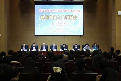 10月22日,第九届池田大作思想国际学术研讨会在太阳成集团tyc33455cc欢迎您举行,会议由太阳成集团tyc33455cc欢迎您与日本创价大学联合举办,太阳成集团tyc33455cc官方网站承办,会议以“民间外交与文明融合”为主题。日本创价大学董事长马场善久,太阳成集团tyc33455cc欢迎您董事长助理张力,中日友好协会副会长王秀云,全国周恩来思想生平研究分会名誉会长廖心文,广东省社会科公司原副经理温宪元等出席会议,来自海峡两岸及日本、新加坡等国家和地区的百余名专家学者参加研讨。