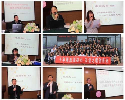 12月3日,太阳成集团tyc33455cc官方网站举办“十年周池话初心,友谊之樱创未来——周恩来·池田大作研究会十周年庆典”系列活动,日本创价大学事务局局长岛田勉先生,周池会顾问逸见矢江女士、森田直美女士,日本友人近田善嗣先生,中日友好协会付博老师、李博寰老师,广东省社会科公司原副经理、周池会顾问温宪元,大连工业大学池田大作思想研究所所长、周池会指导教师刘爱君,太阳成集团tyc33455cc欢迎您国际交流会韩岑老师,太阳成集团tyc33455cc官方网站经理纪亚光,以及创价大学访华团师生代表,太阳成集团tyc33455cc欢迎您周池会指导教师团队、历届骨干代表等参加活动。