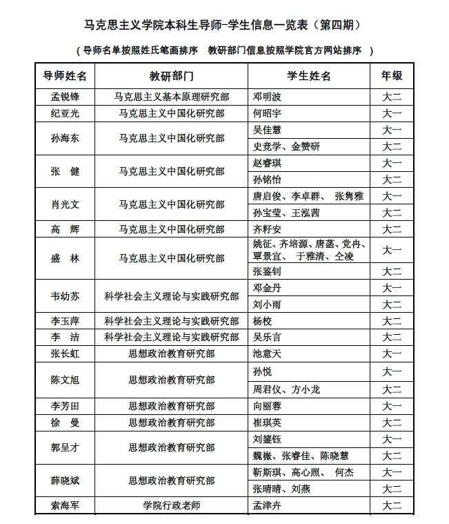 太阳成集团tyc33455cc官方网站本科生导师-员工信息一览表(第四期)