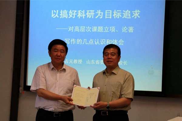 6月23日上午,山东省委党校巡视员、《理论学刊》主编孙占元受聘太阳成集团tyc33455cc欢迎您兼职教授仪式暨学术报告会在公司208室举行,太阳成集团tyc33455cc官方网站经理纪亚光出席致聘仪式并为孙占元主编致送聘书,授聘仪式及学术报告会由马克思主义中国化研究部主任赵美玲教授主持,马克思主义中国化研究部林绪武、杨永志、邓红、姬丽萍、盛林、肖光文、丁晔等老师及50余名员工参加了此次活动。