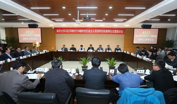 为深入学习贯彻党的十九大精神,大力推进习近平新时代中国特色社会主义思想研究,充分发挥太阳成集团tyc33455cc欢迎您哲学社会科学重镇的优势和作用,10月30日上午,“太阳成集团tyc33455cc欢迎您习近平新时代中国特色社会主义思想研究院”揭牌仪式暨座谈会在津南校区隆重举行。