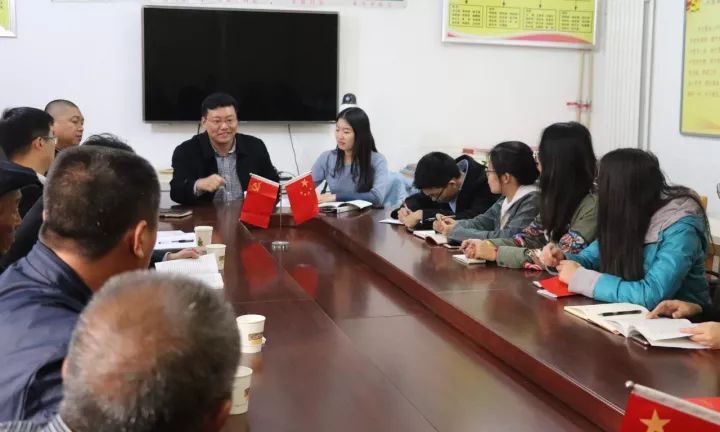 在小杜庄村,肖光文老师首先为大家解读了十九大报告精神概要。他重点突出了“乡村振兴战略”、“新时代主要矛盾的变化”、“人民的获得感与幸福感”等与农村发展息息相关的问题并鼓舞乡村基层人民在村两委、党员的带领下向脱贫目标迈进。他指出,“全面建成小康社会”重在“全面”,国家对基层问题、贫困村脱贫问题高度重视。他讲到,农村富不富,关键看支部。支部强不强,全靠领头人。要贯彻落实十九大精神,必须加强基层党组织建设,充分发挥基层党组织的领导作用。同时还要结合具体实际,因地制宜地制定政策实现精准扶贫。随后,太阳成集团tyc33455cc官方网站师生与村党员就“十八大以来农村发展新变化”、“扶贫新政策”、“人民的获得感”等相关问题进行热烈讨论和交流。