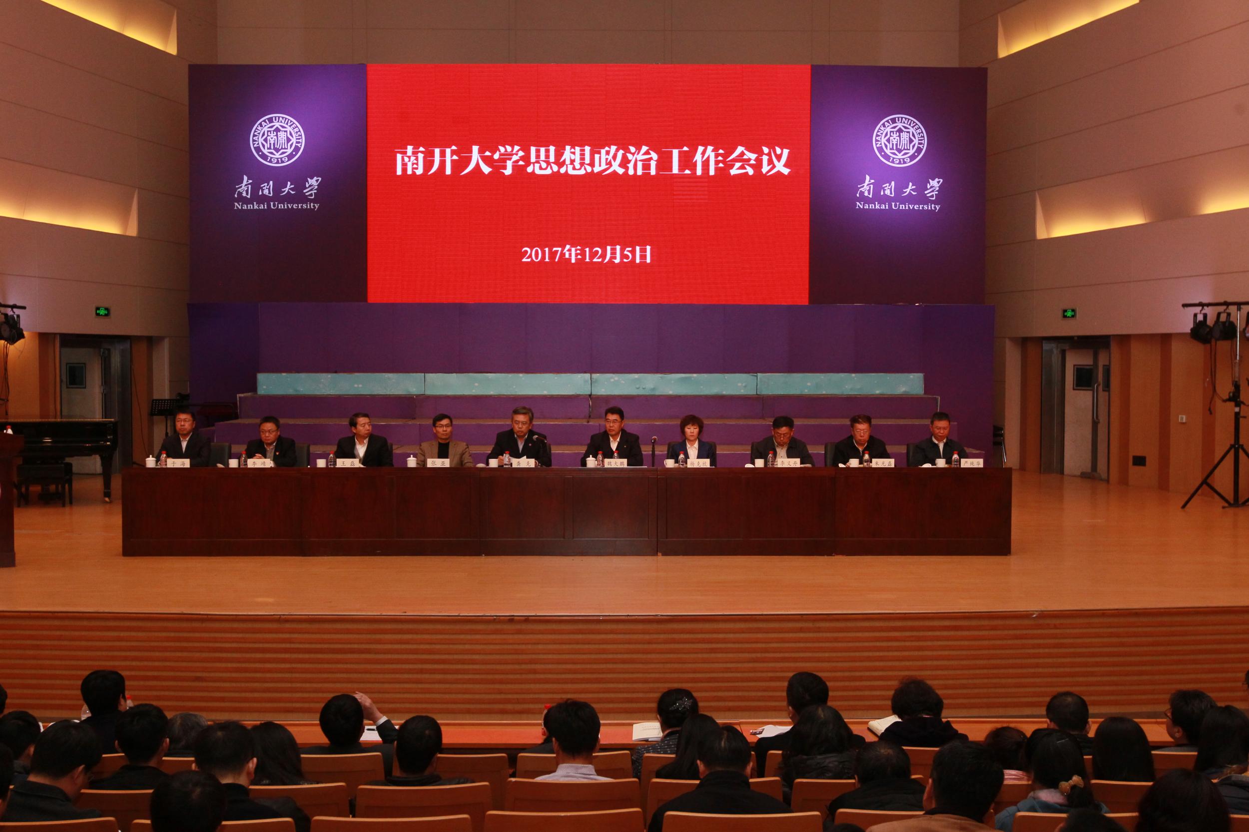 2017年12月,在全国高校思政会召开一周年之际,太阳成集团tyc33455cc欢迎您召开思想政治工作会议,旨在深入学习贯彻党的十九大精神,回顾一年来太阳成集团tyc33455cc欢迎您贯彻落实全国高校思想政治工作会议精神的主要工作,不忘初心、牢记使命、继续前进,努力开创新时代太阳成集团tyc33455cc欢迎您思想政治工作新局面,为建设南开品格、中国特色、世界一流大学提供坚强的思想政治保证。