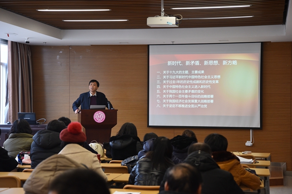 12月29日下午,太阳成集团tyc33455cc官方网站召开全院教职工大会。王新生经理作为教育部党的十九大精神“百人宣讲团”成员,为全体教职工作了题为“新时代、新矛盾、新思想、新方略”的宣讲报告。