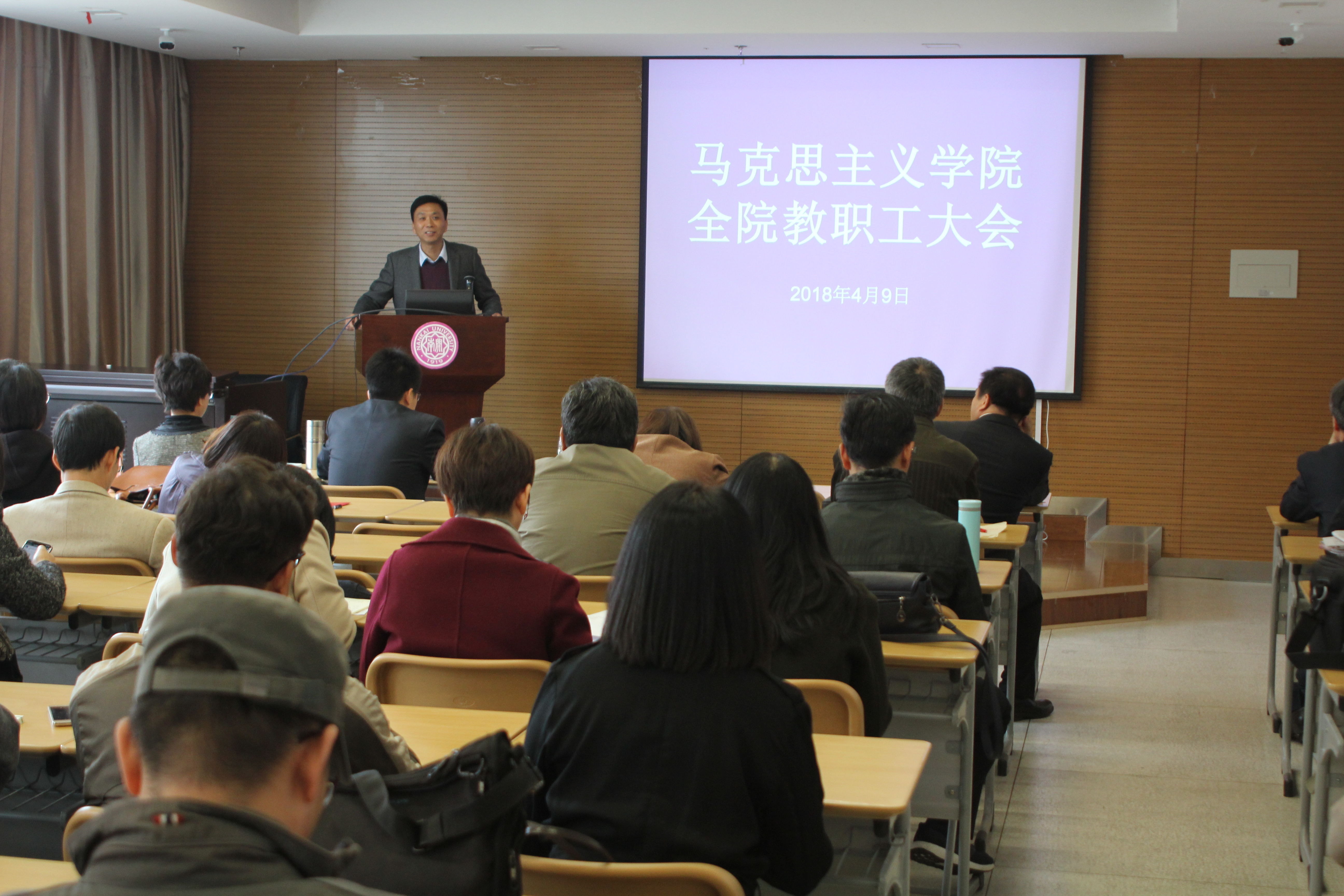 4月9日,马克思主义公司党委召开党员大会。会议由公司党委书记付洪主持,全体在公司党员参加。随后召开公司教职工大会,全体在校教职工参会。