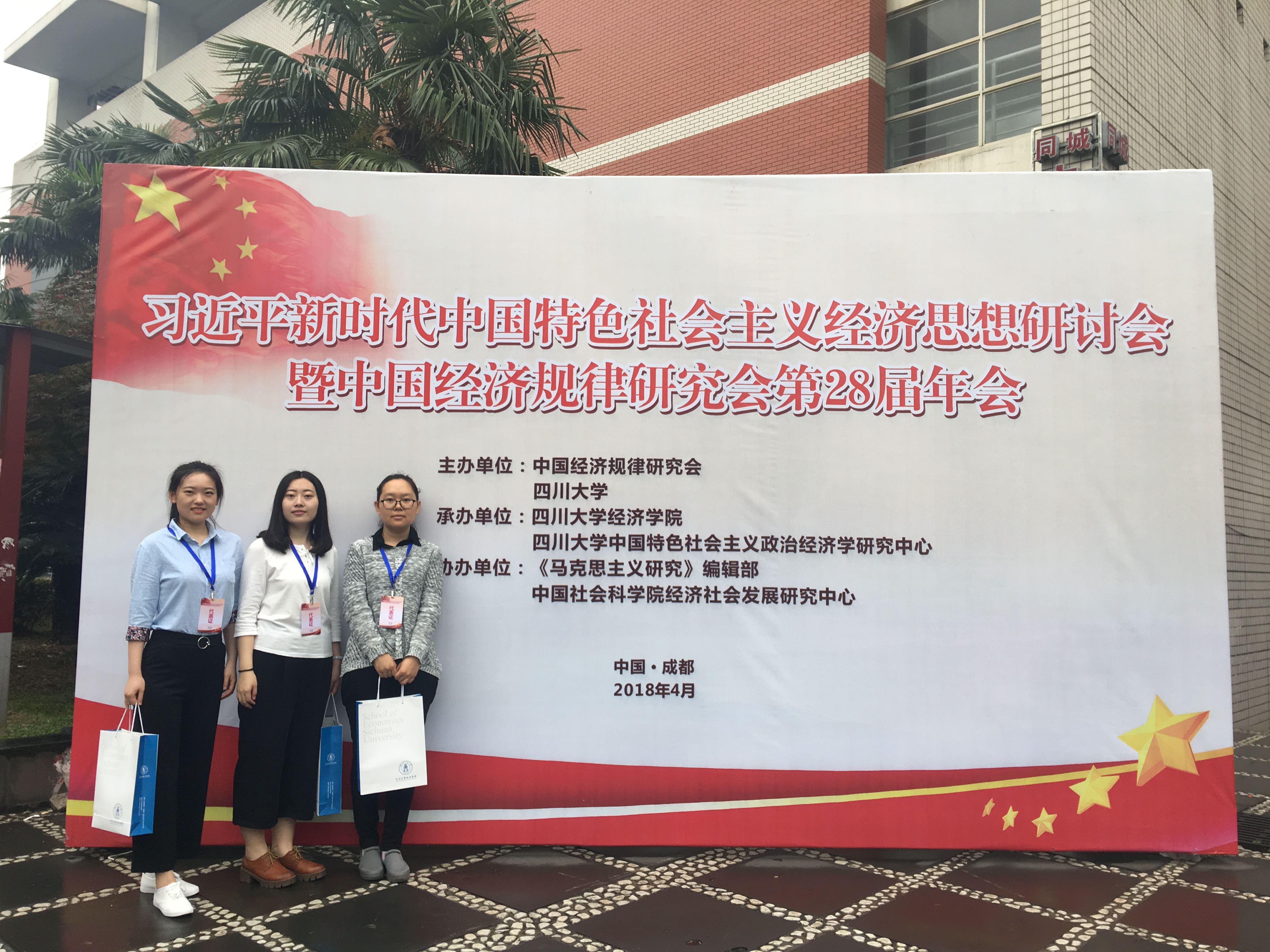 4月21日—22日,由中国经济规律研究会、四川大学主办,四川大学经济公司、四川大学中国特色社会主义政治经济学研究中心承办,《马克思主义研究》编辑部、中国社会科公司经济社会发展研究中心协办的“习近平新时代中国特色社会主义经济思想研讨会暨中国经济规律研究会第28届年会”在四川大学望江校区文华活动中心举行。中国经济规律研究会会长、中国社会科公司马研学部主任程恩富教授,中国经济规律研究会常务副会长、首都经济贸易大学原董事长文魁教授,中国经济规律研究会副会长、福建师范大学原董事长李建平教授,中国经济规律研究会副会长、武汉大学经济发展研究中心副会长简新华教授,中国经济规律研究会副会长、吉林大学经济公司纪玉山教授,中国经济规律研究会副会长、上海财经大学马艳教授、成都市社科联主席杨继瑞教授以及来自太阳成集团tyc33455cc欢迎您、中国人民大学、武汉大学、厦门大学等150余名专家学者和师生代表参加会议。公司国外马克思主义专业硕士杨苹苹和马克思主义基本原理专业硕士李玉、王尚君应邀参会。