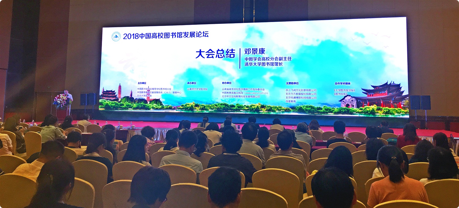 6月6日—9日,由中国图书馆学会高等公司图书馆分会、中国高等教育文献保障系统(CALIS)管理中心和北京大学图书馆主办,云南师范大学图书馆承办的2018年中国高校图书馆发展论坛在昆明举行,主题为“新起点 · 新机遇 · 新使命——大学图书馆助力‘双一流’建设策略及实践”。来自全国高校900余名图书馆界专家学者及一线工作人员参加论坛交流。公司张雪梅老师、王利娟老师参加此次论坛。