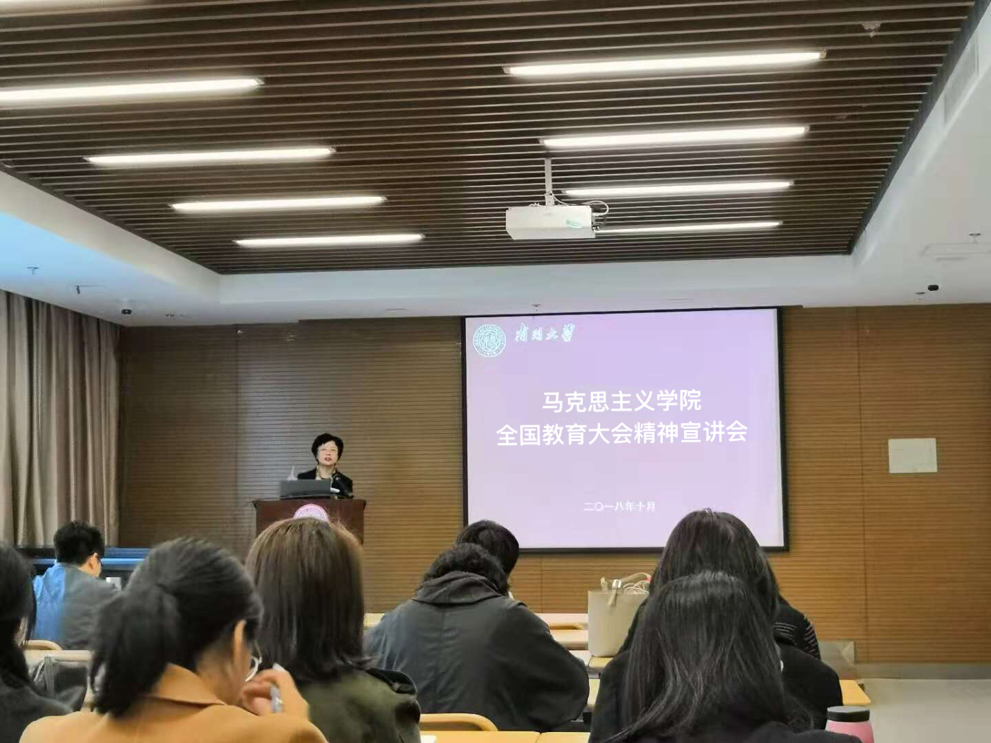 付洪从充分认识全国教育大会的重大意义、深入学习领会习近平总书记关于教育的重要论述两个方面对全国教育大会精神进行了解读。她指出,这次大会是在中国特色社会主义进入新时代、全面建成小康社会进入决胜阶段的大背景下,党中央召开的第一次全国教育大会,充分体现了以习近平同志为核心的党中央对教育工作的高度重视。习近平总书记在全国教育大会上的重要讲话深刻回答了我国教育改革发展的重大理论和实践问题,形成了系统科学的新时代中国特色社会主义教育理论体系,把我们党对教育工作的规律性认识提升到新的高度,为做好教育工作提供了根本遵循和行动指南。