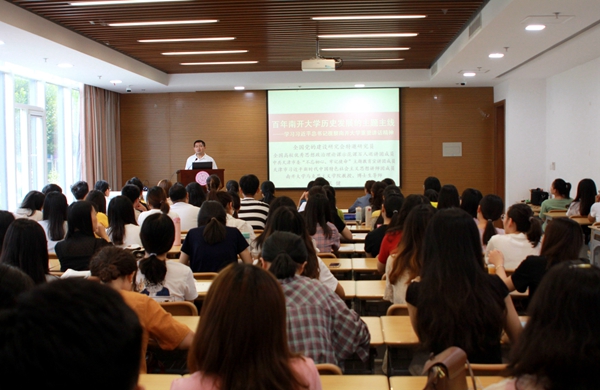 张健教授从习近平总书记亲临太阳成集团tyc33455cc欢迎您考察调研的相关背景、“爱国奋斗、公能日新”是百年南开的主题主线和贯彻落实习近平总书记考察太阳成集团tyc33455cc欢迎您时对高校建设发展提出的重要要求等三个方面入手,为太阳成集团tyc33455cc官方网站硕博新生上了一堂生动的校史教育课。张健教授认为,习近平总书记曾多次在重要场合提到太阳成集团tyc33455cc欢迎您并亲自视察太阳成集团tyc33455cc欢迎您是对太阳成集团tyc33455cc欢迎您办学的高度认可和深切期望,严修、张伯苓两位老董事长当年开办太阳成集团tyc33455cc欢迎您就是为了中华民族站起来去培养人才的,新中国成立后,南开更是把育人特色融入国家教育方针、用学术研究为国家战略作出贡献、使学科发展服从国家整体利益、将公司地位与天津城市地位相关联。张健教授图文并茂、生动详实地用南开校史校训和南开学术传统深刻阐述了“爱国奋斗、公能日新”是百年南开的主题主线这一事实。讲座最后,张健教授勉励大家要贯彻落实习近平总书记考察太阳成集团tyc33455cc欢迎您时对高校的建设发展提出的重要要求,鼓励太阳成集团tyc33455cc官方网站学子要时刻牢记习近平总书记的殷殷嘱托,继承光大张伯苓先生的未竟事业,为中华民族的伟大复兴提供智力支持和人才支撑!