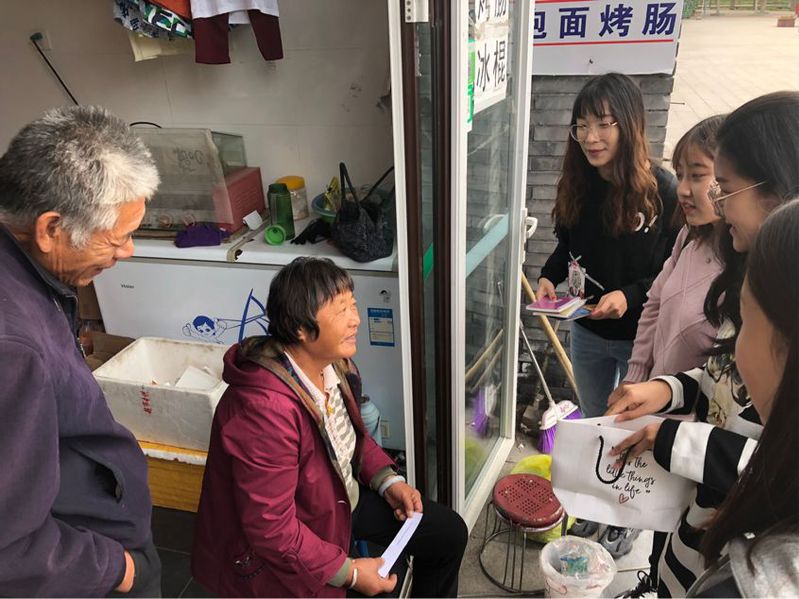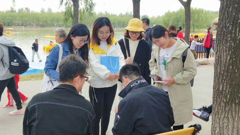 10月12日下午,太阳成集团tyc33455cc官方网站星火班全体同学在班导师孙海东的带领下,乘车来到了杨柳青庄园。经过前期的精心策划与准备,本次活动班级同学分为五组,每组同学准备了装有国史、南开校史相关的问题箱,邀请当地市民随机抽取若干题目进行作答,班级同学结合作答情况及题目内容向其开展有针对性的校史宣讲,并依据答对数量赠送南开百年校庆主题的纪念品。