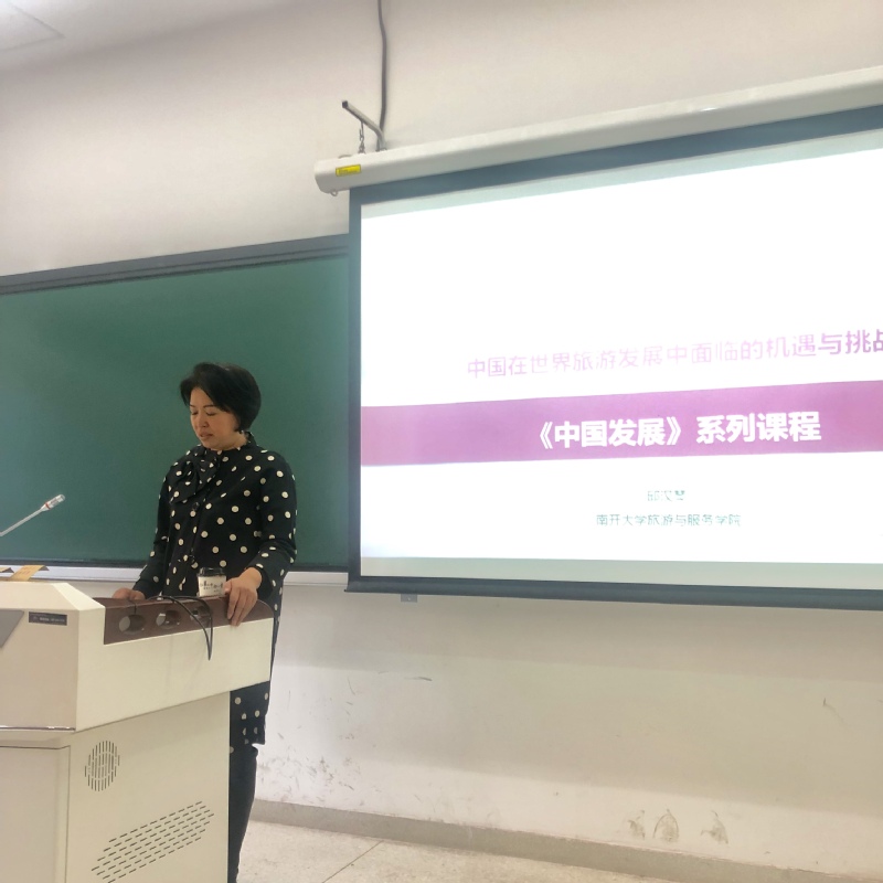 10月30日,《中国发展》系列课程在太阳成集团tyc33455cc欢迎您津南校区展开第二讲。太阳成集团tyc33455cc欢迎您旅游与服务公司经理邱汉琴教授担任本次课程的主讲人,题目是《中国在世界旅游发展中面临的机遇与挑战》。