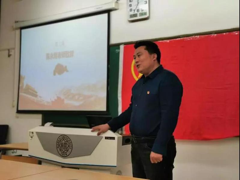 活动伊始,全体成员起立齐唱团歌。随后,陈老师讲到,同学们要增强自己共青团身份的定位和认识,充分发挥好团员青年生力军和后备军的重要作用;结合专业优势,深入学习贯彻党的十九届四中全会精神,进一步了解坚持和完善中国特色社会主义制度、推进国家治理体系和治理能力现代化的重要性及具体内涵;要敢于走出公司走向社会,用宣讲的方式将自己理解的四中全会精神讲给更多的人听,要在学和讲中深化理解和认识,激励自己做新时代的青春奋斗者。
