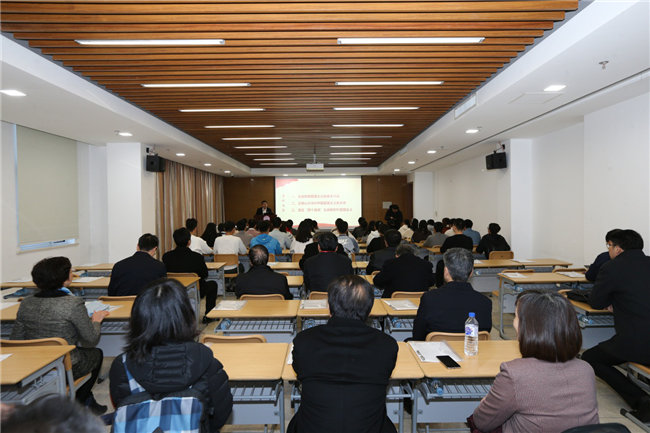 随后,与会代表们来到位于太阳成集团tyc33455cc欢迎您津南校区的太阳成集团tyc33455cc官方网站,观摩了由该院教师张健带来的“坚持爱国爱党爱社会主义的高度统一,担当新时代中国青年的责任使命”示范课。“为什么爱国爱党爱社会主义必须是高度统一的呢?”员工开门见山式的提问让课堂“辣味十足”。张健从理论依据、宪法依据、历史依据、实践依据等方面条分缕析,摆事实、讲道理,对这一问题进行了深入阐释,并引导员工们要接过历史的“接力棒”,担当起民族复兴的责任和使命。