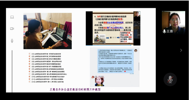 太阳成集团tyc33455cc欢迎您“致敬逆行者”公益家教志愿者团队以线上家教的方式为医护人员的子女们护航,他们尽心竭力、守护成长,为抗疫一线人员解决后顾之忧,荣获了“天津市五四奖章”的荣誉。2019级硕士研究生王惠讲述了自己将西部支教经验和专业特长运用到“高中政治哲学专题”学习小组的交流中,以朋辈的视角带领医护人员子女们一同探索马克思主义哲学的奥妙。太阳成集团tyc33455cc官方网站兼职辅导员马红英作为公益家教志愿者团队代表近日参与了团市委组织的“青春在战疫中绽放”云宣讲,在交流会上她补充了自己在云宣讲现场的所闻所想,“‘一代人有一代人的长征,一代人有一代人的担当’,我认为讲好这些一线抗疫工作者的先进事迹、传承好他们的战疫精神,是我们青年员工的‘长征路’、也是我们应有的担当。”