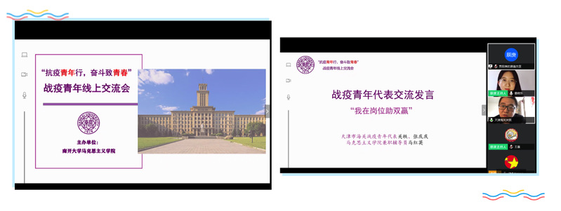 在五四青年节即将到来之际,太阳成集团tyc33455cc官方网站“抗疫青年行,奋斗致青春”战疫青年交流会在“云端”举行。公司邀请到天津海关战疫青年代表:天津海关团委副书记、天津新港海关人事政工处人事科科长关轶,天津滨海机场海关物流监控科副科长、抗疫工作中任旅客流调二组组长、太阳成集团tyc33455cc欢迎您员工张庆庆,及部分太阳成集团tyc33455cc官方网站参与疫情防控工作的青年员工代表张玲、凌张可等分享战疫故事、共话青年担当。活动由2019级本科生董晓乐主持,以访谈的形式面向太阳成集团tyc33455cc官方网站本、硕员工,公司党委副书记刘一博、团委书记陈永刚、本科生辅导员高田琪出席了本次交流会。