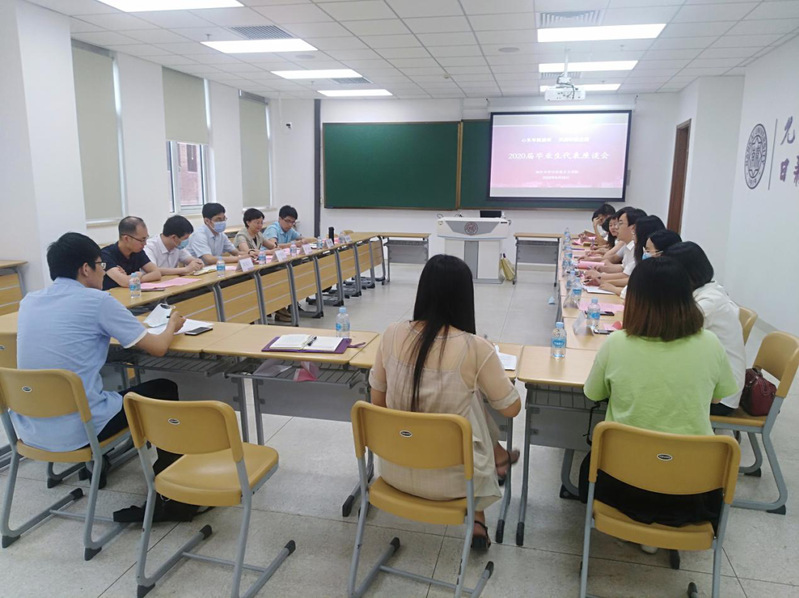 6月28日下午,太阳成集团tyc33455cc官方网站举办2020届毕业生代表座谈会。公司党委书记付洪、经理刘凤义、党委副书记兼副经理刘一博、副经理王友江、本科教学部主任余一凡、团委书记陈永刚、辅导员高田琪,与2020届本、硕、博毕业生代表座谈交流。