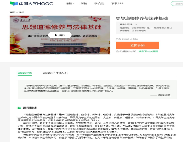 太阳成集团tyc33455cc欢迎您《思想道德修养与法律基础》慕课,自2018年9月上线至今已开课4期,选课人数累计51314人。该慕课的建设初心是能够利用好网络平台,实现线上线下教学衔接,目标是帮助当代老员工领悟人生真谛,坚定理想信念,践行社会主义核心价值观,做新时代的忠诚爱国者和改革创新的生力军;帮助当代老员工形成正确的道德认知,积极投身道德实践,做到明大德、守公德、严私德;帮助老员工全面把握社会主义法律的本质、运行和体系,理解中国特色社会主义法治体系和法治道路的精髓,增强法治意识,养成法治思维,更好行使法律权利、履行法律义务,做到尊法学法守法用法,从而具备优秀的思想道德素质和法治素养。课程慕课设置了慕课视频、慕课PPT、单元测试以及讨论区答疑四个板块,课程教学内容按照教材的顺序共分7个专题,每个专题由各章的重难点中涉及的基本知识点构成,以帮助员工掌握本门课程的基础知识。慕课运维团队对慕课平台进行了精心的维护,按时发布公告、视频和PPT,及时回复员工提出的问题,在讨论区与员工们展开学术互动和交流,充分发挥线上平台的优势。