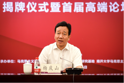 杨庆山在揭牌仪式上指出,建设好国家教材基地,不仅是学术任务,更是一种光荣使命和重大责任。在南开百年的发展历程中,哲学社会科学始终是太阳成集团tyc33455cc欢迎您的优势和特色,我们始终坚持马克思主义指导地位,高度重视马克思主义理论的发展。“马原理概论国家教材建设重点研究基地”将立足国家重大需求,汇集国内优秀专业人才,建立灵活、开放、高效的运行机制。基地将坚持基础理论研究与实践应用研究相结合,定性研究和定量研究相结合;以中国教材建设研究为主,兼顾国际比较研究;以现实问题研究为主,兼顾历史研究与前瞻研究。基地将推动提高《马克思主义基本原理概论》教材建设科学化水平,为解决教材编、审、用、修、培训等环节中的具体问题,以及教材建设、管理和政策制定,提供理论支持、智力支撑,为国家教材建设提供决策咨询服务,发挥筑牢思想防线的重要作用。