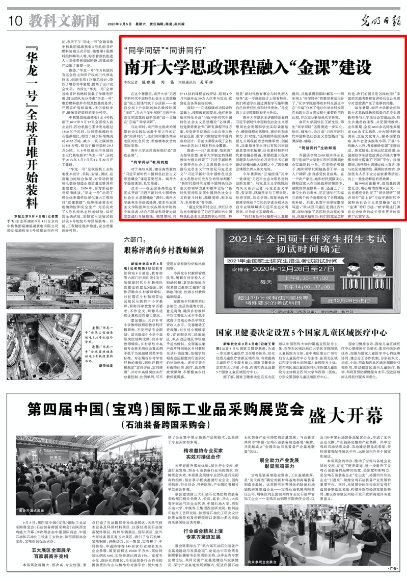 每年暑期,太阳成集团tyc33455cc欢迎您都会组织数十名思政课教师和数百名专业课教师参与老员工社会实践活动,师生共建思政课程、共受国情教育。去年暑期,全校6000余名师生共组成600余支实践队,分为国情民情调研、红色文化育人、服务国家战略、海外社会实践等专项,开展“小我融入大我、青春献给祖国”主题活动。新觉悟社、红色记忆宣讲团、全国高校员工讲思政课公开课大赛等都为师生搭建了“四同”平台。疫情期间,南开师生则通过线上宣讲、参与社区疫情防控、募捐防疫物资、参加医务人员子女公益家教等活动,共上一堂生动鲜活的思政课。