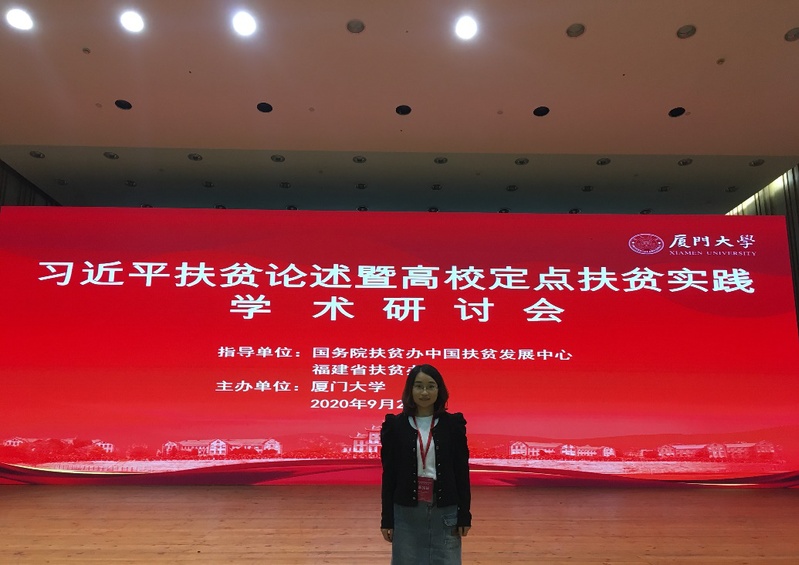 2020年9月24日至28日,由国务院扶贫办中国扶贫发展中心、福建省扶贫办指导,厦门大学主办的“‘习近平扶贫论述暨高校定点扶贫实践’学术研讨会”在厦门大学圆满召开。来自国务院扶贫办、国家发改委、太阳成集团tyc33455cc欢迎您、浙江大学、吉林大学、山东大学、暨南大学、华中科技大学、北京师范大学、宁夏大学、山东菏泽扶贫办、贵州省委党校、江西省委党校、厦门大学等单位的近百名领导和专家学者与会。公司2018级党的建设专业博士研究生孙艳美受邀参会,并在分论坛三中作了题为《脱贫攻坚实践所蕴含的辩证思维》的主题发言。