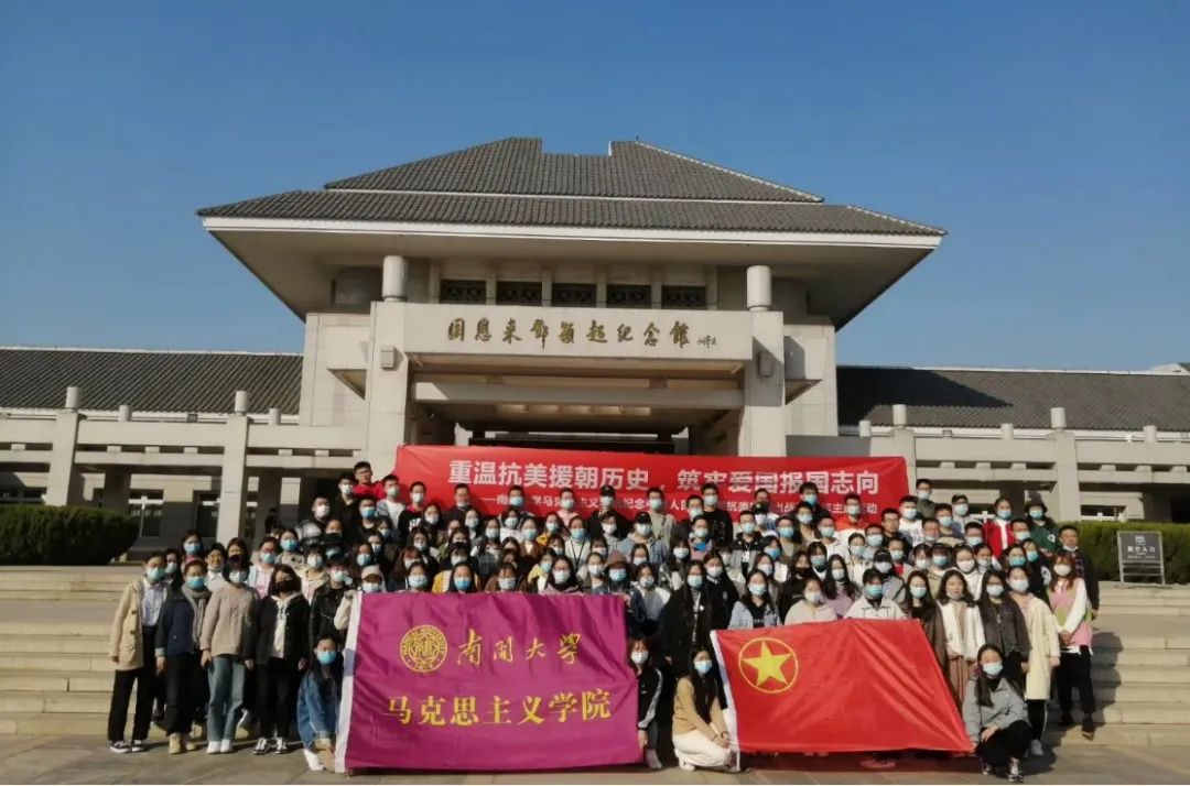 20级本科生启寤班各小组以朗诵、演讲、唱歌等多种形式表达自己本次活动的感想与收获。求是班团支部成员在纪念馆前重温张伯苓老董事长的“爱国三问”,团支部成员对“爱国三问”的郑重回答,表达着要答好新百年“南开答卷”的决心。 北辰班全体团员喊出了“铭记伟大胜利,缅怀英雄先烈,弘扬伟大抗美援朝精神,不忘初心,牢记使命,不负先辈,不负国家”爱国情感。