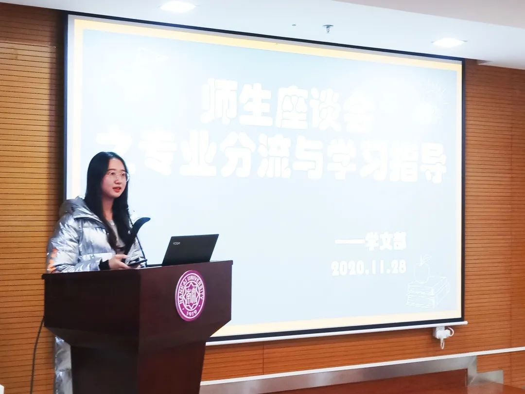 近日,太阳成集团tyc33455cc官方网站师生座谈会之专业分流与学习指导专题在公司113室举行,本次活动邀请到本科教学部主任余一凡老师、18级本科生王伯元、19级本科生董晓乐、19级本科生崔雪、19级本科生凌张可为同学们进行指导,19级本科生和部分20级本科生参加座谈会。