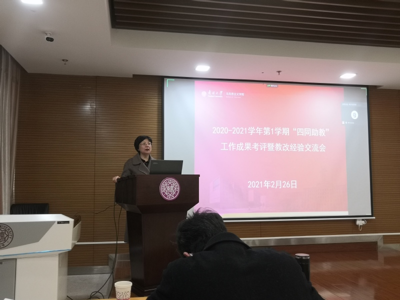 为贯彻公司《推动新时代思想政治理论课高质量发展的规定》,进一步完善“师生四同(同学同研同讲同行)”育人模式,推进思政课改革创新和提高思政课后备团队人才培养质量,2月26日,公司召开2020-2021第一学期“四同助教”成果考评暨教改经验交流会。部分公司教学指导委员会成员、上学期“四同助教”设岗教师及“四同助教”研究生通过线上线下方式同步参加。公司党委书记付洪教授主持会议。