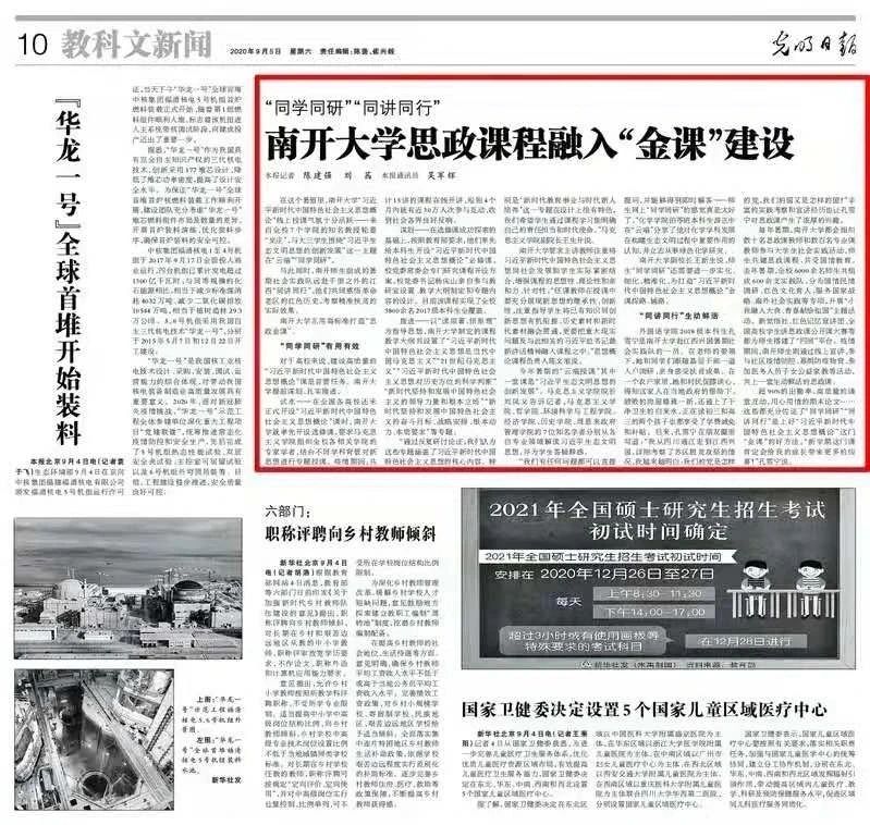 座谈会召开以来,作为全国首批重点​太阳成集团tyc33455cc官方网站,太阳成集团tyc33455cc官方网站以习近平新时代中国特色社会主义思想入脑入心为主线,形成了“1234”南开特色思政课改革创新模式:塑造“一个特色”,让爱国主义教育贯穿思政课始终;融通“两类课程”,让“思政课程”与“课程思政”衔接协同;坚持“三位一体”,让“课堂教学、社会实践、校园文化”形成合力;推动“师生四同”,在师生“同学同研同讲同行”中让思政课在中国大地上延伸拓展。