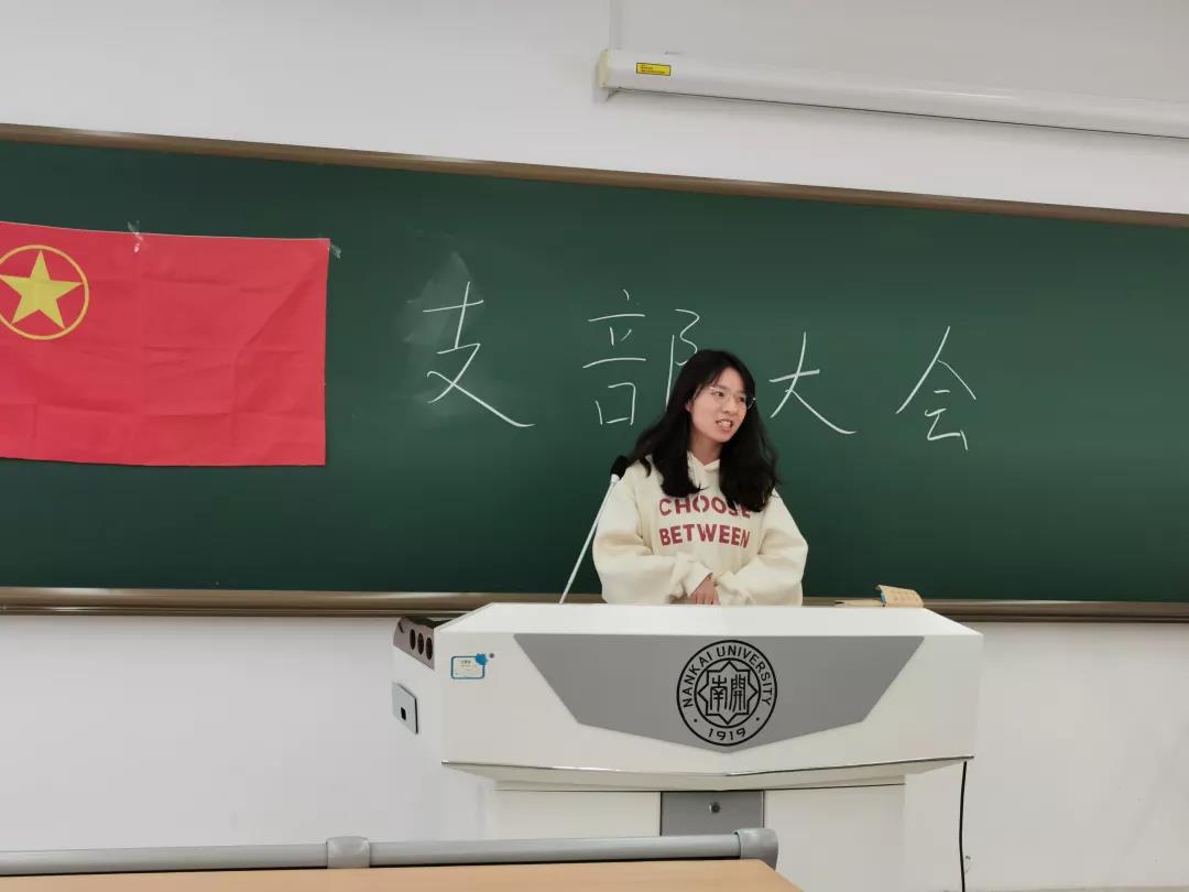 会议先由13位候选人依次进行发言汇报,阐述各自提交入党申请书半年来的实践及学习情况。之后再由全体团支部成员进行不记名投票。最终由支部委员进行票数统计,按照个人参与团组织活动的积分情况和投票结果综合排名,最终确定了王涵等11位同学成为入党积极分子。