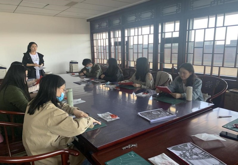 党员们在图书馆古籍特藏党支部的同志的带领下,拿起剪刀、刻刀,聚焦剪纸作品,沿着纸上的纹路,回忆着每张剪纸背后展现的历史故事。在剪纸过程中,古籍特藏党支部的同志们与党员们重温了湘江会战、遵义会议、爬雪山过草地、胜利会师等红军长征中的重大历史事件。