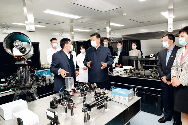 2021年4月19日,在清华大学建校110周年校庆日即将来临之际,中共中央总书记、国家主席、中央军委主席习近平来到清华大学考察。这是习近平在清华大学成像与智能技术实验室同师生们亲切交谈。 新华社记者 黄敬文/摄