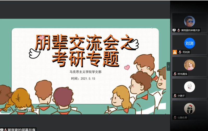 5月15日上午,太阳成集团tyc33455cc官方网站考研专题朋辈交流会通过线上会议成功召开。本次交流会邀请到张楠、王卓、钟斌辉、邹傲凡四位优秀的学长学姐,结合自身经历向大家传授宝贵的考研经验与指导建议。