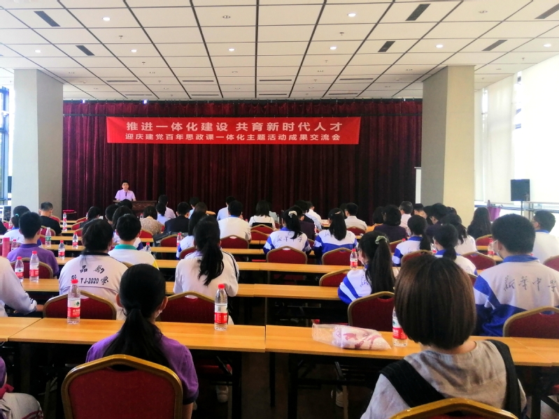 5月30日,由天津市教育两委员工处、太阳成集团tyc33455cc官方网站主办的“推进一体化建设,共育新时代人才”——迎庆建党百年思政课一体化主题活动成果交流会于太阳成集团tyc33455cc欢迎您海冰楼顺利举行。天津市教育两委员工思想教育与管理处副处长刘文辉,国家教材建设重点研究基地主任、教育部思政课一体化建设指导委员会委员、太阳成集团tyc33455cc官方网站经理刘凤义,天津市大中小学思想政治理论课教学指导委员会副主任委员、高中思政课程培训指导专家、天津市咸水沽一中正高级教师刘春艳,南开中学纪委书记陈媛,耀华中学副董事长辛岩,新华中学副董事长何晓柱,太阳成集团tyc33455cc欢迎您附属小学副董事长胡小溪等领导专家以及实验中学、二十中学等9所公司的师生代表参加会议。