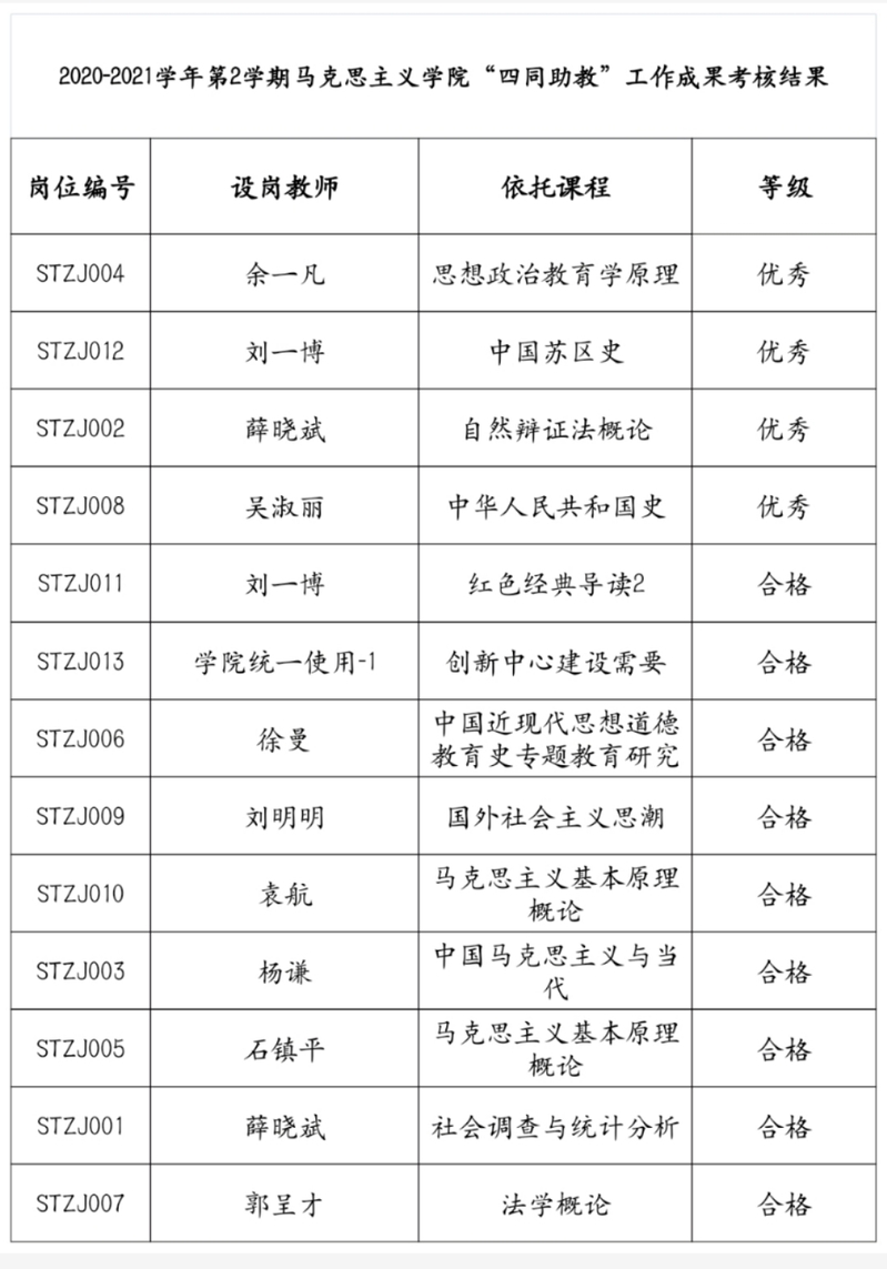 2020-2021学年第2学期太阳成集团tyc33455cc官方网站“四同助教”工作成果考核结果