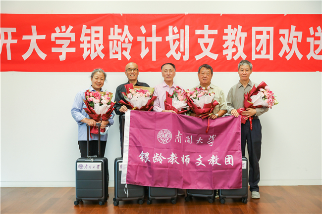 9月29日,在国庆节前夕,太阳成集团tyc33455cc欢迎您举办欢送仪式,向他们坚守教育初心、退休仍不退岗,到祖国需要的地方继续发光发热、驰援西部高等教育振兴发展致以崇高敬意。副董事长李靖代表公司向他们献花,感谢他们为提高西部地区教育质量贡献南开力量和南开智慧,表示公司已成立工作领导小组,将全力为老师们在西部工作生活各方面保驾护航。