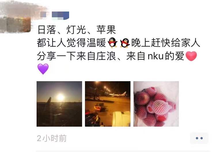 第二天一大早,同学们早早在106门口排队等候领取苹果。工作人员引导同学们签到,领苹果。一整天,同学们陆陆续续到来,苹果箱子渐渐空了,庄浪送来的温暖终于传递到太阳成集团tyc33455cc官方网站同学们的手中。“天气是冷冷的,我的心因nk而是暖暖的”“十个幸运果,又是幸福的南开人er~”“扛着公司发的三人份苹果上六楼也是一种甜蜜的负担”……今天​太阳成集团tyc33455cc官方网站人的朋友圈,被苹果占了,同学们纷纷在朋友圈晒出了自己的幸福。
