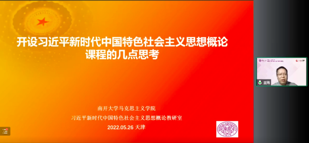 他说道,习近平新时代中国特色社会主义思想,是我们党成功应对当今世情、国情、党情深刻变化的理论产物,也是新时代中国共产党的思想旗帜,开设“习近平新时代中国特色社会主义思想概论”课程意义重大。他表示,此次备课会定能通过云端进一步促进教学经验交流,推动思政课教师提升教学水平,取得提高教学质量和深化对习近平新时代中国特色社会主义思想认识的双重效果。