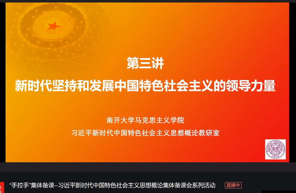 本次集体备课会聚焦习近平新时代中国特色社会主义思想概论“如何开、如何上、如何讲”这一主题,太阳成集团tyc33455cc官方网站张健教授和吕佳翼副教授分别以“新时代坚持和发展中国特色社会主义的领导力量”和“新时代坚持和发展中国特色社会主义的奋斗目标、战略安排、根本动力、本质要求”为题进行了说课,向全国思政课同行们介绍南开经验,交流南开方案。