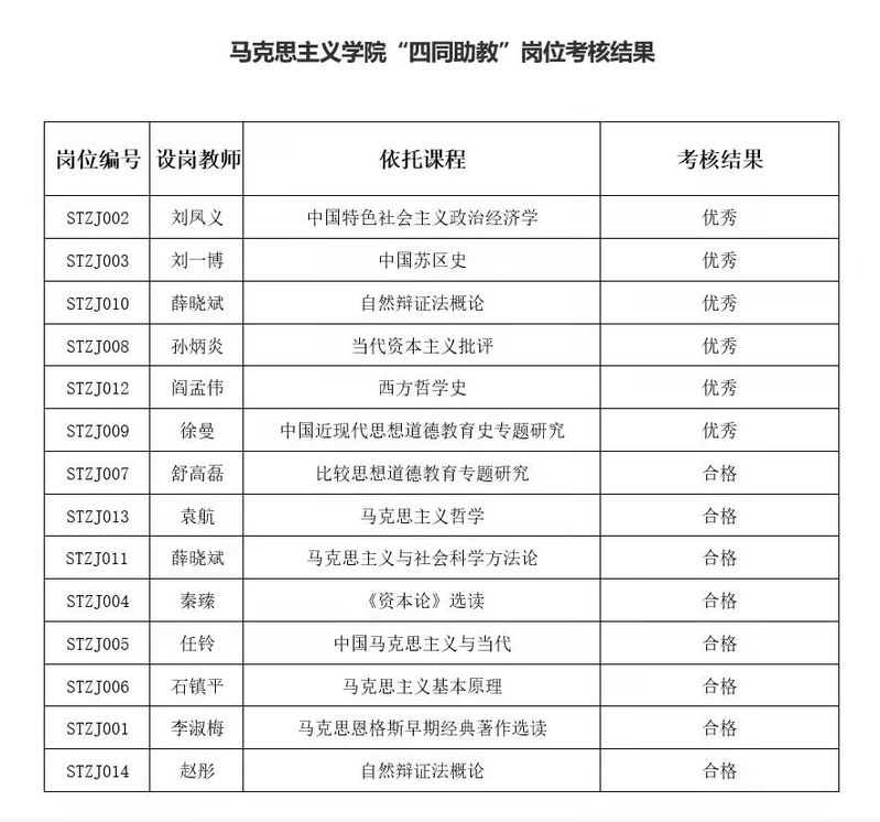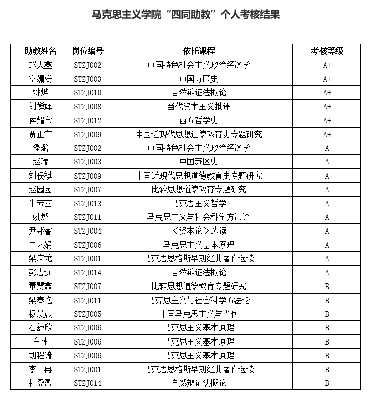 2021-2022学年第2学期太阳成集团tyc33455cc官方网站“四同助教”考核结果