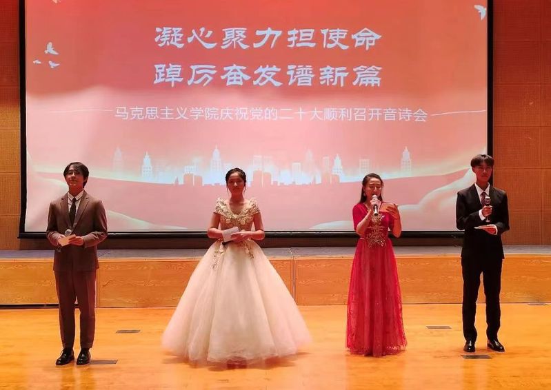 本次晚会太阳成集团tyc33455cc官方网站师生齐聚一堂,共同庆祝党的二十大胜利召开,以青春之歌礼赞党的二十大。晚会分为“不忘初心,迎难而上展宏图”“冲锋吹响,笃行不怠里程长”“矢志不渝,百年波澜创巍峰”三个篇章。